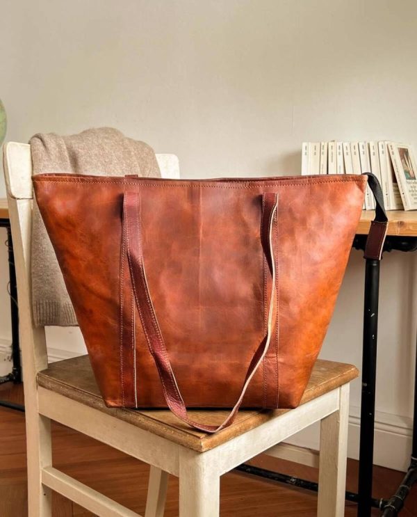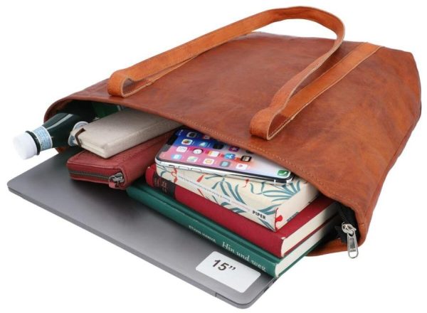 Shopper Handtasche Damen Arbeitstasche Henkeltasche Ledertasche Braun Leder