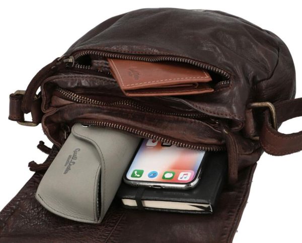 Abmessungen (B x H x T):22 x 18 x 7 cmHergestellt in :IndienProduzent:50-150 MitarbeiterLeder:RindslederLederart:halbvegetatives WachsGerbung:SemichromeEigene Gerberei:jaFarbe:braunGewicht:0,55 kgTrageriemen:76 – 133 cm