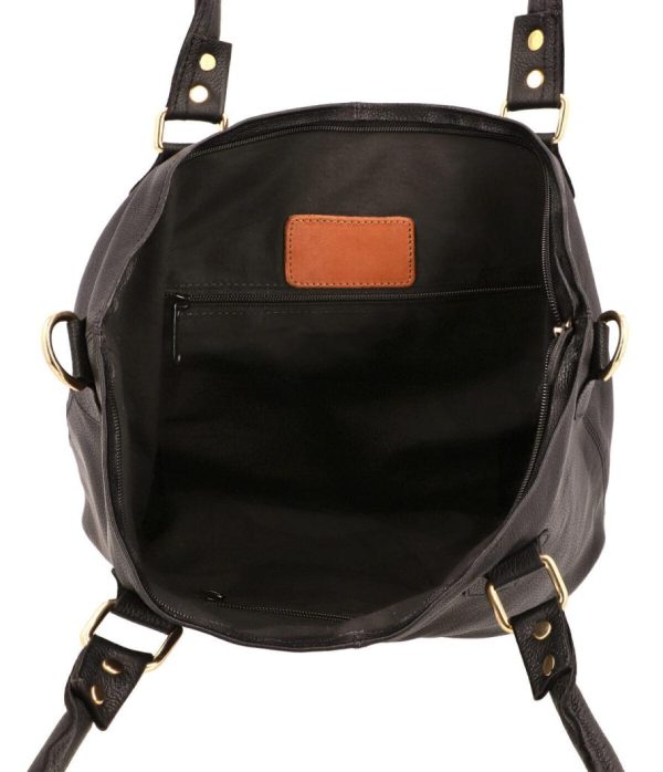 Handtasche Shopper Umhängetasche Vintage Schwarz Leder