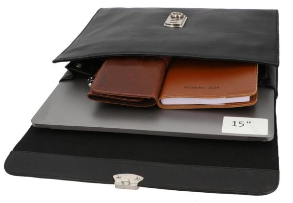 Laptoptasche Laptophülle Ledertasche Damen Herren Schwarz Leder
